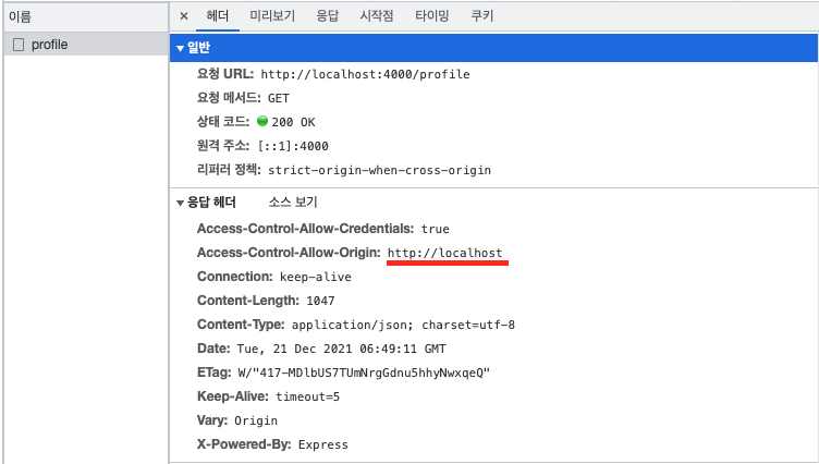 node.js 측 에서는 요청자의 origin을 허용함으로 CORS(Cross-Origin Resource Sharing), 교차 출처 리소스 공유를 열어주게됩니다.