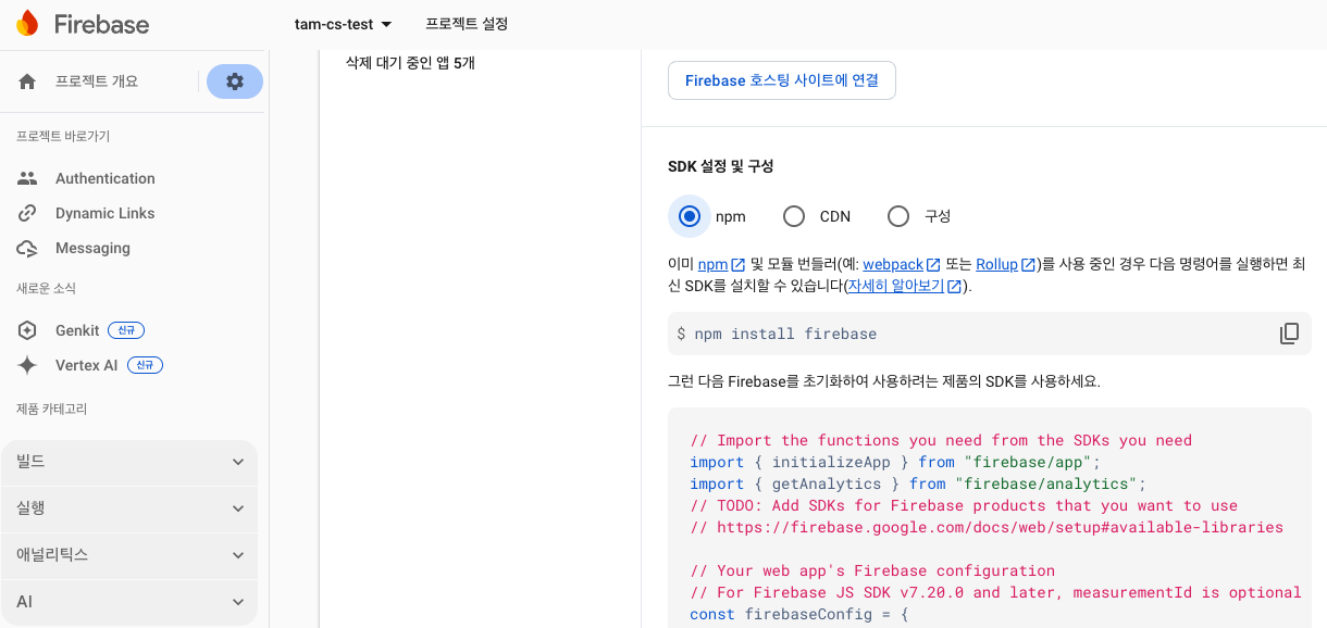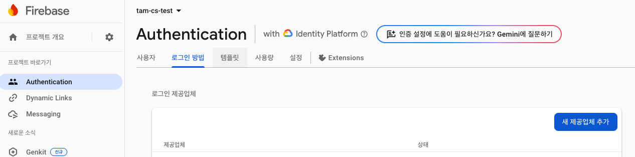 - Authentication → 로그인 방법 → 새 제공업체 추가