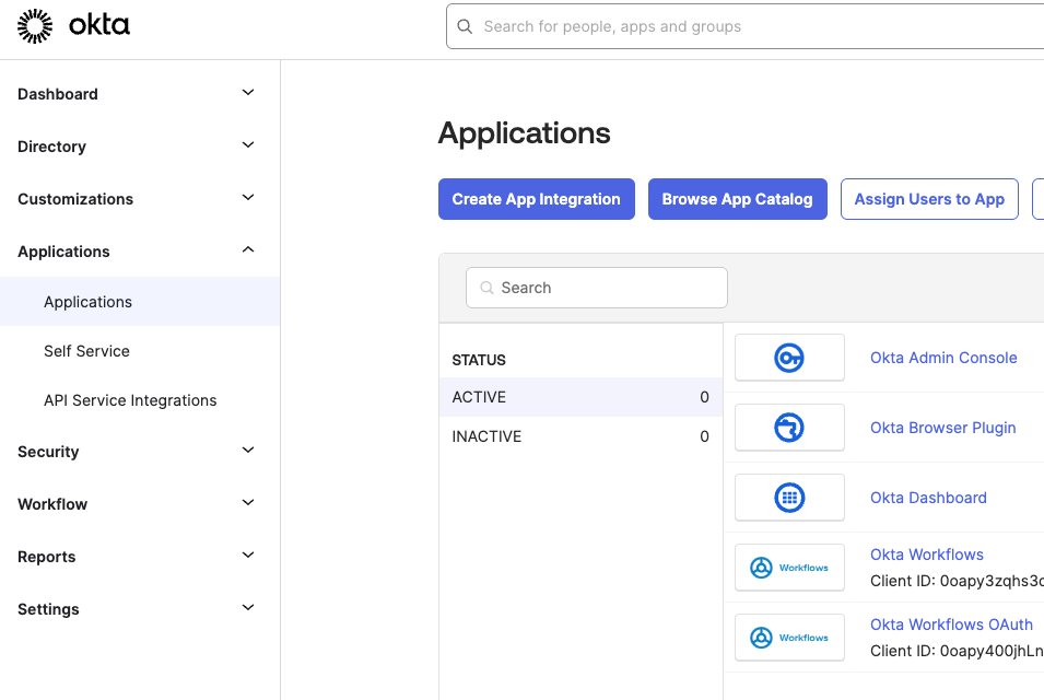 2. OKTA Admin 콘솔 접속 : Applications > Applications : Create App Integration