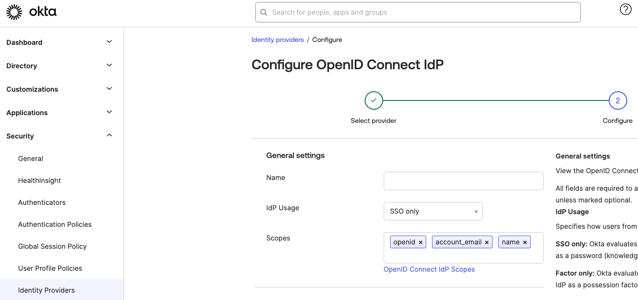 idpId: 'OKTA IdP ID', // OKTA : Security
