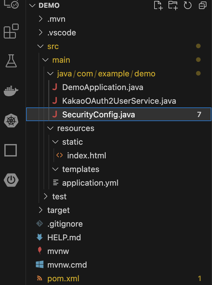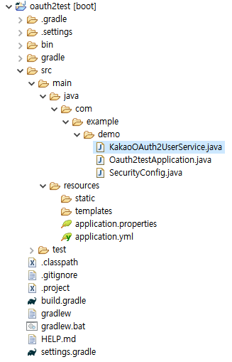 java 소스 코드 폴더에 SecurityConfig.java 파일과 KakaoOAuth2UserService.java 파일