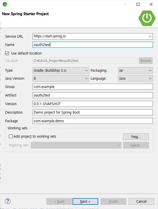 File > New > Spring Starter Project