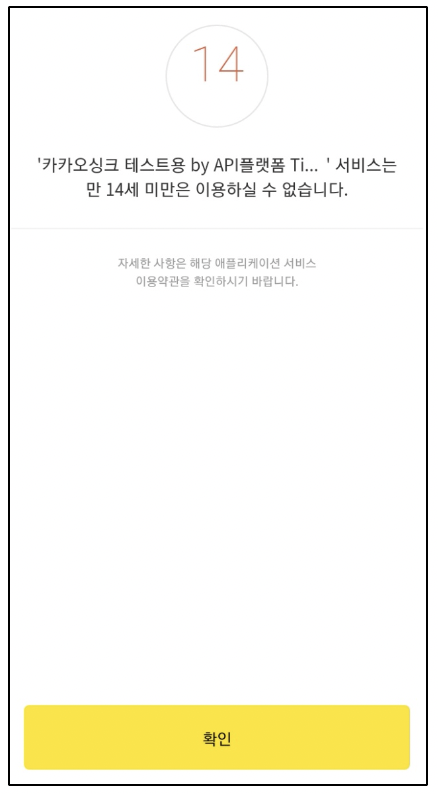 본인 확인으로 나이가 인증된 14세 미만 이용자가 카카오 로그인 시, 아래와 같이 이용할 수 없습니다.