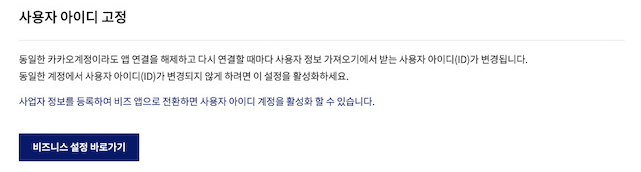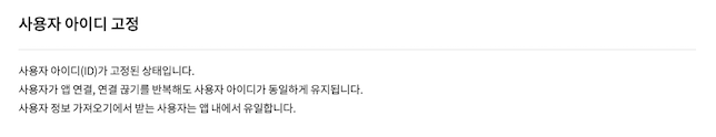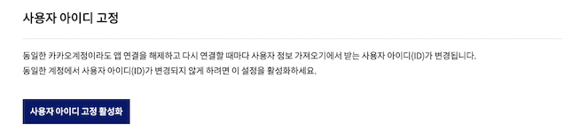 "내 애플리케이션>제품 설정>카카오 로그인>고급 : 사용자 아이디 고정"을 활성화 하지 않으면 연결 해제 후, 다시 연결 시 사용자 ID(앱 유저 ID) 가 변경됩니다.