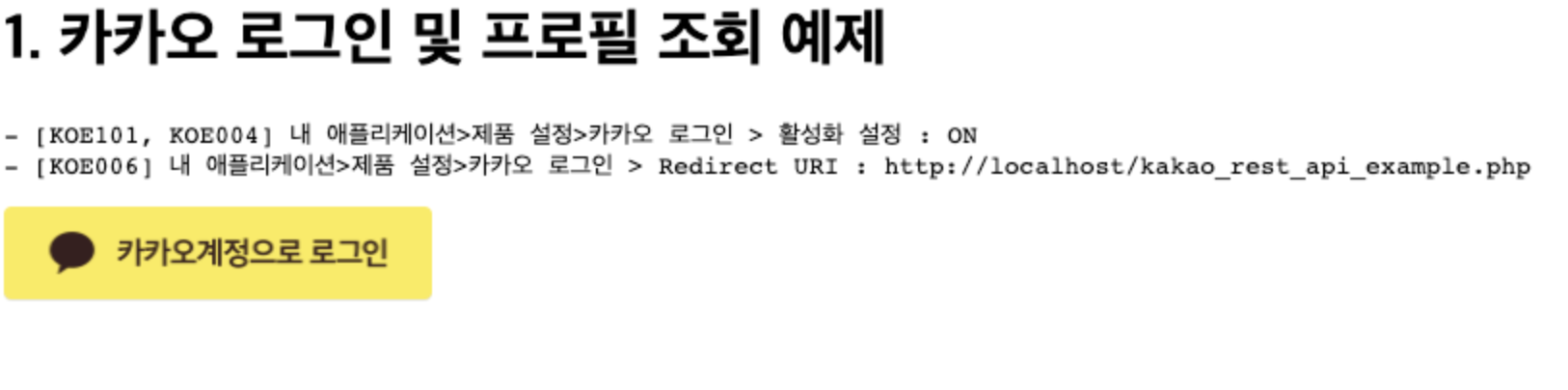 <h1>1. 카카오 로그인 및 프로필 조회 예제</h1>